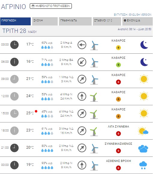 Την Τρίτη 28 Μαΐου 2019 στα δυτικά ηπειρωτικά και το Ιόνιο αναμένονται νεφώσεις με τοπικές βροχές στην Ήπειρο, τη Δυτική Στερεά και το Ιόνιο.