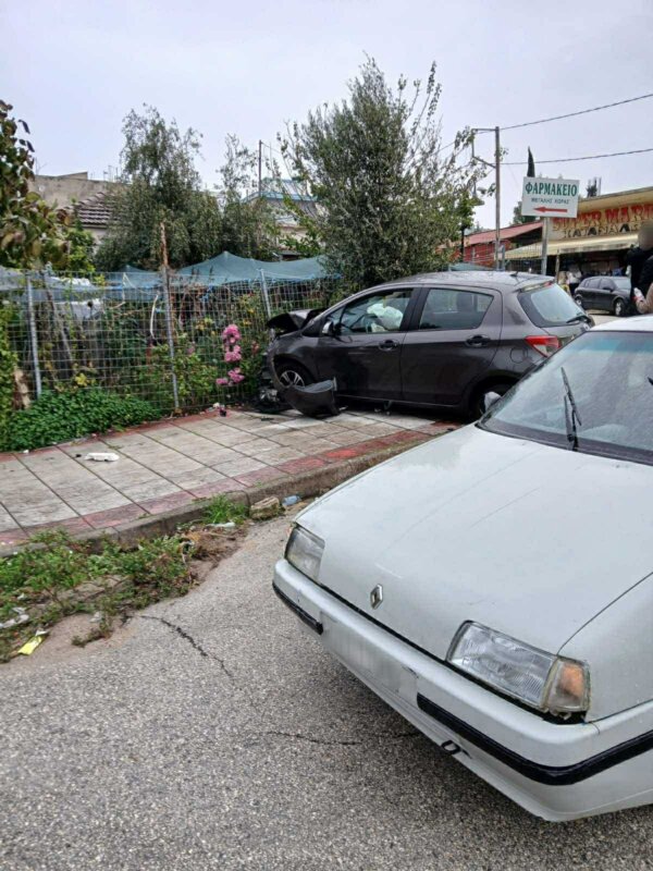 Μετά τη σύγκρουση το ένα αυτοκίνητο παρέσυρε και ξήλωσε κολώνα φωτισμού και καρφώθηκε πάνω σε φράκτη όπου και σταμάτησε.