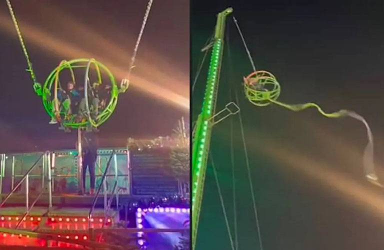 Το τρομακτικό ατύχημα έγινε στο παιχνίδι Slingshot του λούνα παρκ, Winter Wonderland, που βρίσκεται στο Χάιντ Παρκ του Λονδίνου στην Βρετανία. Μέσα στην μεταλλική κάψουλα βρίσκονταν δυο άτομα. Το παιχνίδι ήταν σε εξέλιξη. Ξαφνικά ο ένας από τους δυο ιμάντες που συγκρατούσαν την κάψουλα έσπασε και όσοι ήταν εκεί… πάγωσαν από τρόμο. Αμέσως η κάψουλα άρχισε να πηγαινοέρχεται στον αέρα και άρχισε να χτυπάει και στον μεταλλικό γερανό που συγκρατούσε το Slingshot.