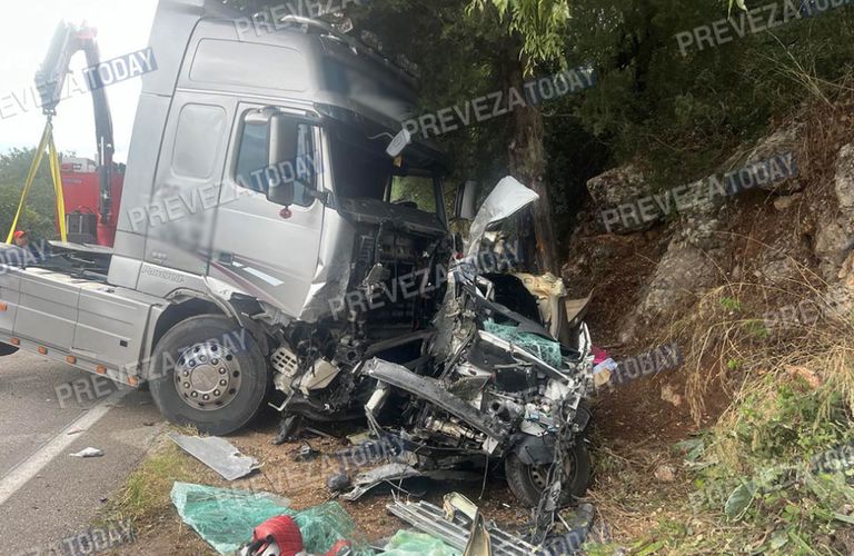 Τροχαίο δυστύχημα στην Πρέβεζα: Σύγκρουση Ι.Χ. με φορτηγό, μετατράπηκε σε άμορφη μάζα (Photos)
