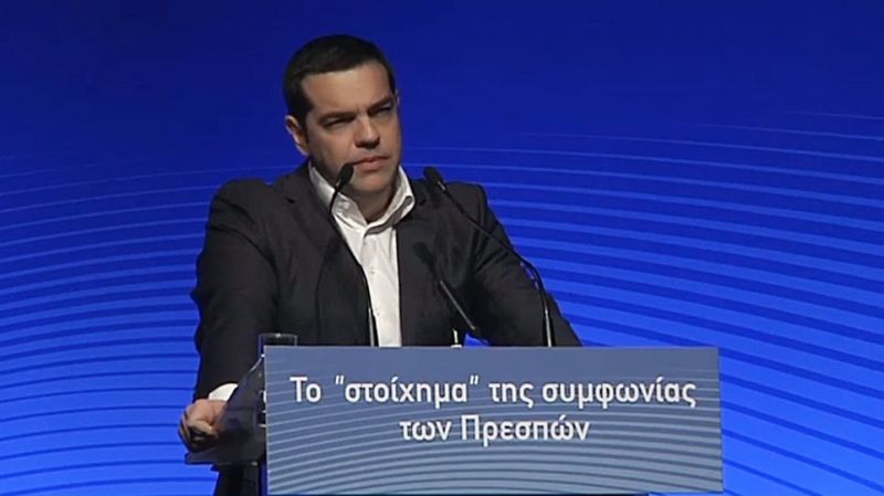 «Η γειτονική χώρα, μετά από 23 χρόνια, αφήνει πίσω της την ονομασία “Πρώην Γιουγκοσλαβική Δημοκρατία της Μακεδονίας”, το σημαντικότερο αφήνει πίσω τη συνταγματική της ονομασία και από “Δημοκρατία της Μακεδονίας” την μετέτρεψε σε «Δημοκρατία της Βόρειας Μακεδονίας», δηλαδή σε μια σύνθετη ονομασία με γεωγραφικό προσδιορισμό, για όλες τις χρήσεις, εντός και εκτός, αυτό που χρόνια ζητούσε η ελληνική πλευρά. Αποδέχθηκε ότι η γλώσσα της, αναγνωρισμένη από το 1977 από τον ΟΗΕ, είναι μια νοτιο-σλαβική γλώσσα και ότι ο πολιτισμός της δεν έχει σχέση με τον αρχαιοελληνικό μακεδονικό πολιτισμό. Απάλειψε από το Σύνταγμά της κάθε υποψία αλυτρωτισμού, καθώς και οποιαδήποτε, έστω και έμμεση, αναφορά σε μειονότητα. Στο νέο της Σύνταγμα δηλώνεται ρητά ότι η ιθαγένεια, όπως θα αναγράφεται στα ταξιδιωτικά της έγγραφα, δεν καθορίζει, ούτε προκαταλαμβάνει την εθνότητα των πολιτών της Βόρειας Μακεδονίας», σημείωσε ο πρωθυπουργός.