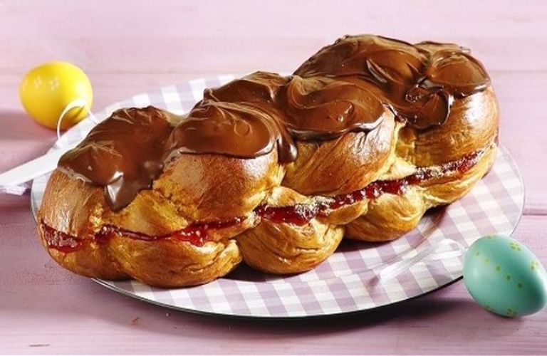 Τσουρέκι γεμιστό με μαρμελάδα φράουλα και μπισκότο
