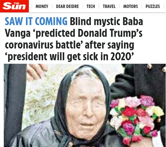 Σύμφωνα με την εφημερίδα, ένας οπαδός του Τραμπ έγραψε στο Twitter: «Άκουσα αυτήν την πρόβλεψη σχεδόν πριν από ένα χρόνο. Τότε δεν το πίστεψα. Τώρα το κάνω». Ένας άλλος έγραψε: «Αν η Μπαμπά Βάνγκα έχει δίκαιο, θα φάω το καπέλο μου». Ένας τρίτος πρόσθεσε: «Ο Τραμπ ήταν θετικός για τον covid-19, η πρόβλεψη της Μπάμπα Βάνγκα επαληθεύεται και πάλι».