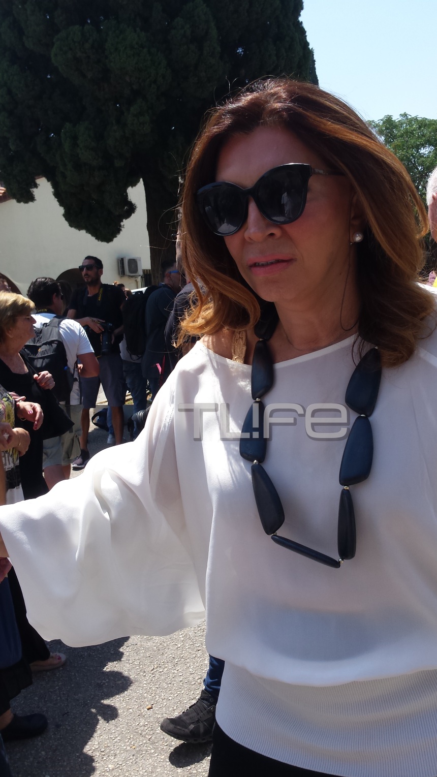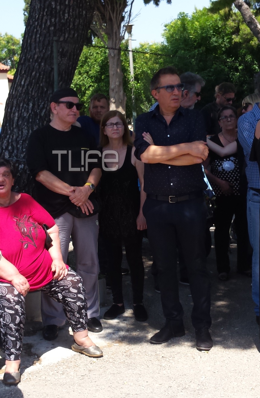 Μαζί στην κηδεία της αγαπημένης τους Τζέσυς ο σύζυγός της Γιάννης Μάνιος, ο οποίος δεν σταμάτησε να κλαίει ούτε στιγμή και ο πρώτος της σύζυγος και πατέρας του γιου της Θάνος Καληώρας