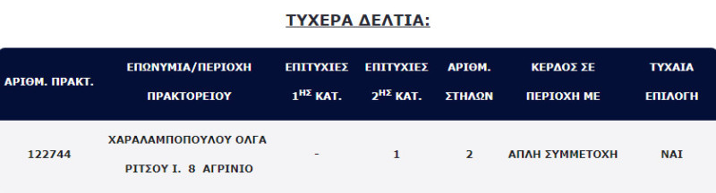 Σύμφωνα, με το AgrinioTimes.gr ο νικητής ή νικήτρια έπαιξε δύο στήλες αξίας 2 ευρώ με τυχαία επιλογή και η μία από αυτές κερδίζει 100.000 ευρώ!
