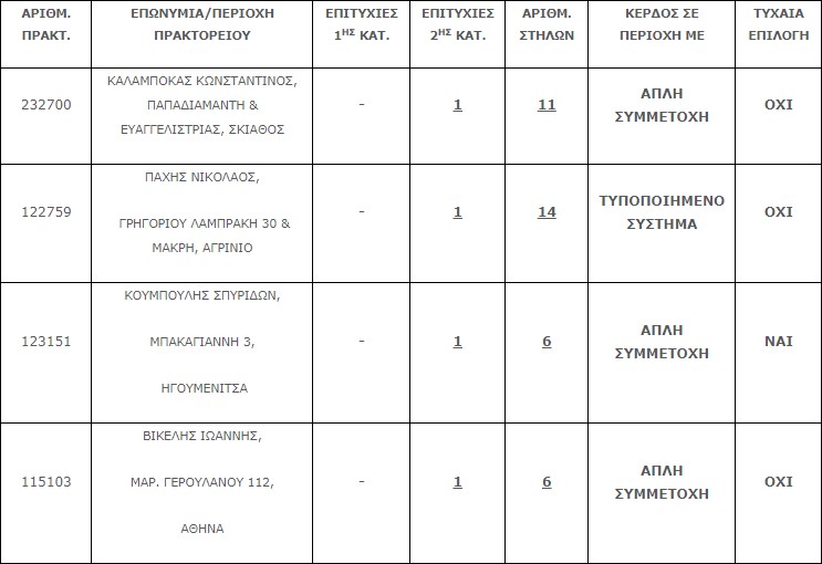 Επίσης στην δεύτερη κατηγορία (5άρια) βρέθηκαν τέσσερα (4) τυχερά δελτία, τα οποία κερδίζουν το ποσό των €57.110,55 έκαστο.