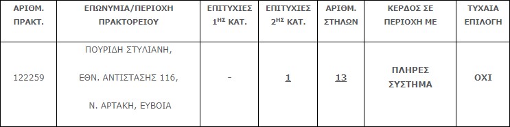 Επίσης στην δεύτερη κατηγορία (5άρια) βρέθηκε μία (1) επιτυχία, η οποία κερδίζει το ποσό των €69.484,84.