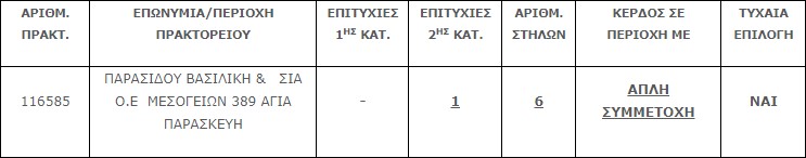 Επίσης στην δεύτερη κατηγορία (5άρια) βρέθηκε μία (1) επιτυχία, η οποία κερδίζει το ποσό των €109.776,82.
