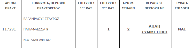 Επίσης στην δεύτερη κατηγορία (5άρια) βρέθηκε μία (1) επιτυχία, η οποία κερδίζει το ποσό των €57.860,34.