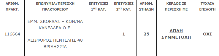 Επίσης στην δεύτερη κατηγορία (5άρια) βρέθηκε ένα τυχερό δελτίο που κερδίζει το ποσό των €62.064,68.