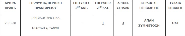 Επίσης στην δεύτερη κατηγορία (5άρια) βρέθηκε μία (1) επιτυχία, η οποία κερδίζει το ποσό των€67.492,64.