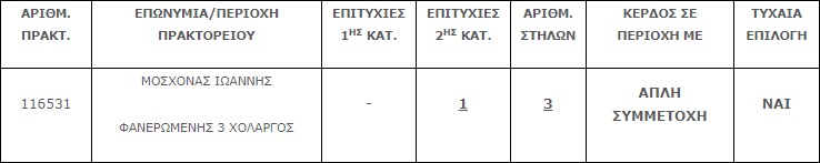 Επίσης στην δεύτερη κατηγορία (5άρια) βρέθηκε ένα (1) τυχερό δελτίο, που κερδίζει το ποσό των €89.789,57 έκαστο.