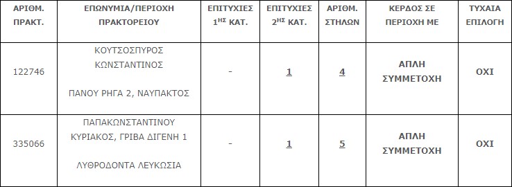 Επίσης στην δεύτερη κατηγορία (5άρια) βρέθηκαν δύο (2) επιτυχίες . Η κάθε επιτυχία κερδίζει το ποσό των € 60.386,26.