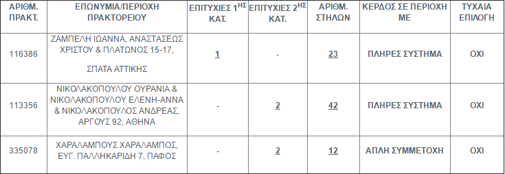 Επίσης, έξι (6) επιτυχίες βρέθηκαν στην 2η κατηγορία (5) εκ των οποίων οι τέσσερις αντιστοιχούν σε δύο τυχερά δελτία. Κάθε επιτυχία κερδίζει το ποσό των €20.995,42.