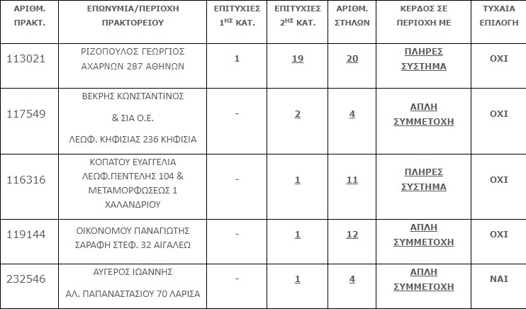Επίσης, οχτώ (8) τυχερά δελτία βρέθηκαν στην 2η κατηγορία (5), εκ των οποίων το ένα φέρει δύο (2) επιτυχίες και τα οποία κερδίζουν το ποσό των € 5.523,84 για κάθε επιτυχία.