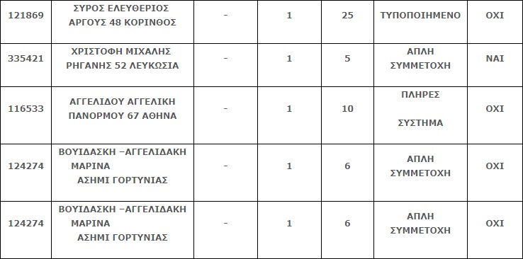 Επίσης, τριάντα δύο (32) επιτυχίες βρέθηκαν στην 2η κατηγορία (5) που κερδίζουν το ποσό των €4.682,79.