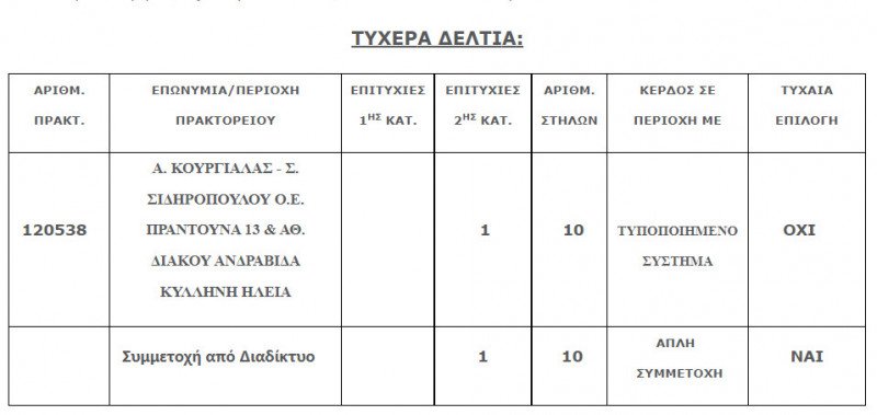 Τζόκερ – Ηλεία: Ένας τυχερός κέρδισε 70.000 ευρώ – Για έναν αριθμό δεν πήρε όλο το Τζακ Ποτ