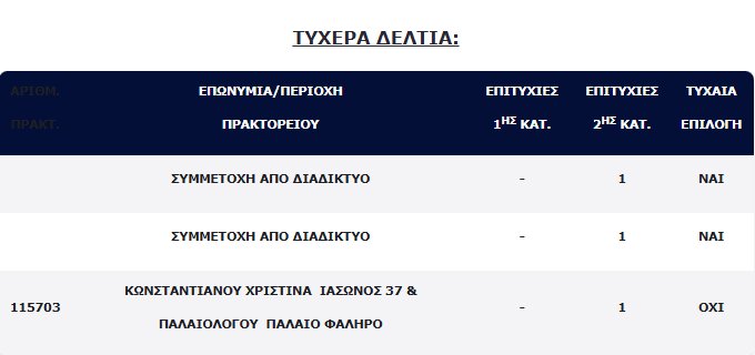 Επίσης, τρία (3) τυχερά δελτία βρέθηκαν στη 2η κατηγορία (5), τα οποία κερδίζουν το ποσό των €100.000,00 για κάθε επιτυχία.