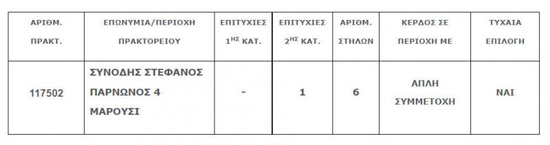 Επίσης στην δεύτερη κατηγορία (5άρια) βρέθηκε μία (1) επιτυχία, η οποία κερδίζει το ποσό των €208.681,59.