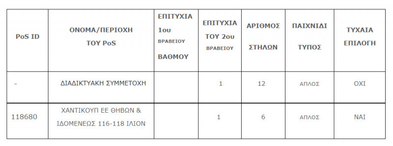Επίσης έξι (6) επιτυχίες ταίριαξαν με το 2ο βραβείο (5) και κέρδισαν το ποσό των €105.912,53 έκαστη.