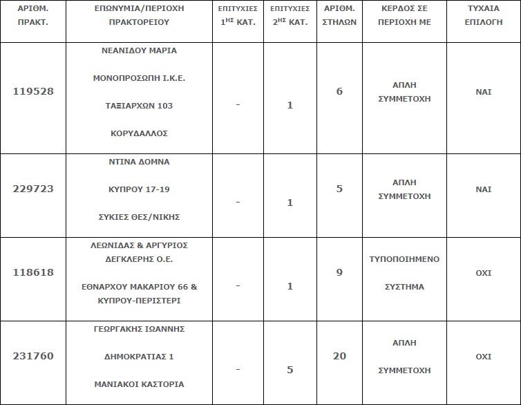 Επίσης στην δεύτερη κατηγορία (5άρια) βρέθηκαν τέσσερα (4) τυχερά δελτία, εκ των οποίων το ένα φέρει πέντε (5) επιτυχίες και τα οποία κερδίζουν το ποσό των €13.157,78 για κάθε επιτυχία.