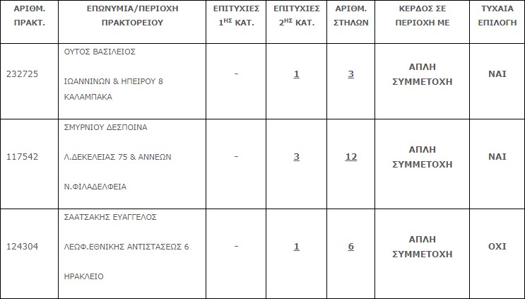 Επίσης στην δεύτερη κατηγορία (5άρια) βρέθηκαν πέντε (5) επιτυχίες, τα οποία κερδίζουν το ποσό των €22.362,95 έκαστη.