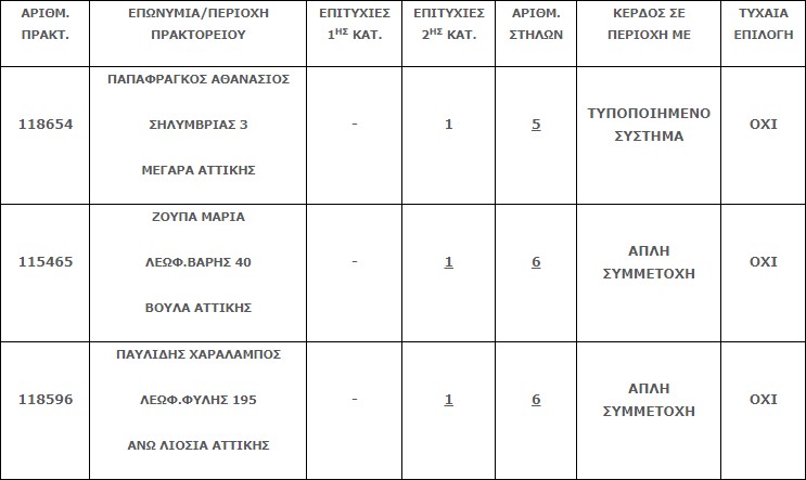 Επίσης στην δεύτερη κατηγορία (5άρια) βρέθηκαν πέντε (5) τυχερά δελτία, τα οποία κερδίζουν το ποσό των €23.294,31 έκαστο.