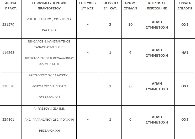 Επίσης στην δεύτερη κατηγορία (5άρια) βρέθηκαν πέντε (5) επιτυχίες, τα οποία κερδίζουν το ποσό των €35.347,59 έκαστη.