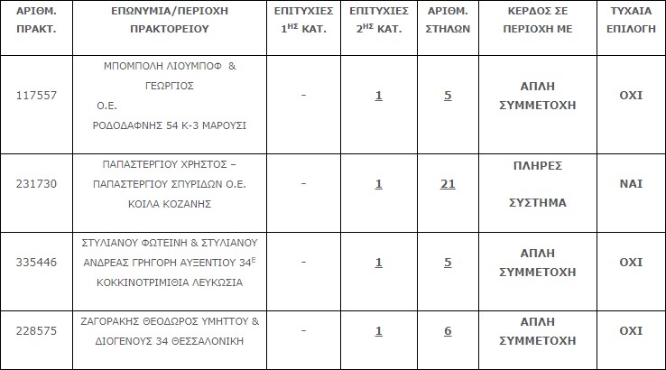 Επίσης στην δεύτερη κατηγορία (5άρια) βρέθηκαν τέσσερες (4) επιτυχίες. Η κάθε επιτυχία κερδίζει το ποσό των € 27.085,75.