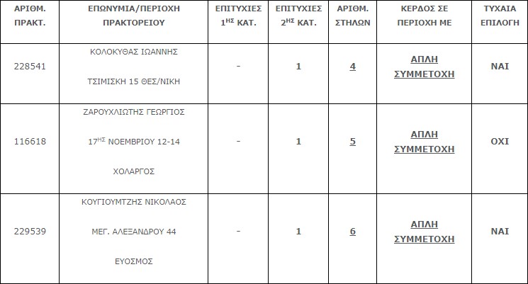 Επίσης στην δεύτερη κατηγορία (5άρια) βρέθηκαν τρεις (3) επιτυχίες . Η κάθε επιτυχία κερδίζει το ποσό των € 20.114,60.
