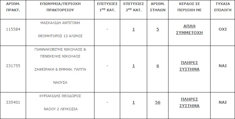 Επίσης στην δεύτερη κατηγορία (5άρια) βρέθηκαν τρία (3) τυχερά δελτία, τα οποία κερδίζουν το ποσό των €27.792,74 έκαστο.