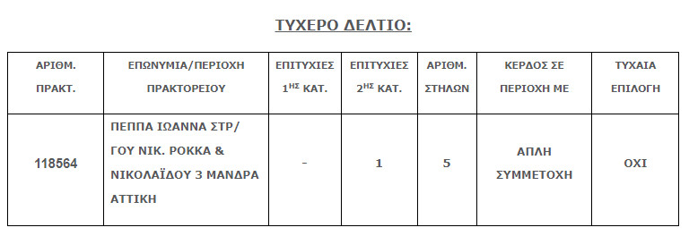 Επίσης στην δεύτερη κατηγορία (5άρια) βρέθηκε μία (1) επιτυχία, η οποία κερδίζει το ποσό των €72.562,18.