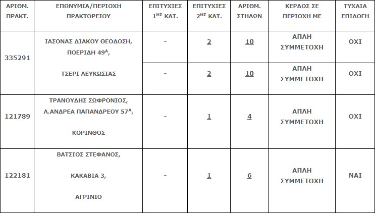 Επίσης στην δεύτερη κατηγορία (5άρια) βρέθηκαν τέσσερα (4) τυχερά δελτία, εκ των οποίων δύο φέρουν δύο (2) επιτυχίες όπου η κάθε επιτυχία κερδίζει το ποσό των €20.304,41.