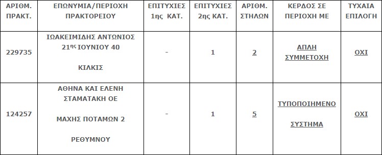 Επίσης στην δεύτερη κατηγορία (5άρια) βρέθηκαν δύο (2) τυχερά δελτία, τα οποία κερδίζουν το ποσό των €33.119,49 έκαστο.