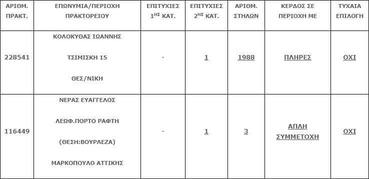 Επίσης στην δεύτερη κατηγορία (5άρια) βρέθηκαν δύο (2) επιτυχίες. Η κάθε επιτυχία κερδίζει το ποσό των € 101.157,76.