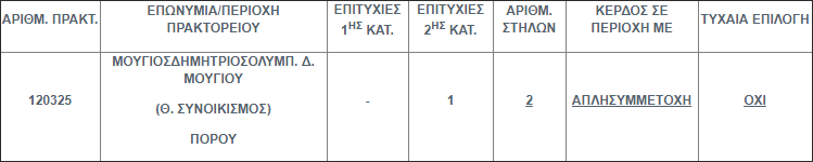 Επίσης στην δεύτερη κατηγορία (5άρια) βρέθηκε 1 τυχερό δελτίο το οποίο κερδίζει το ποσό των € 53.833,07.