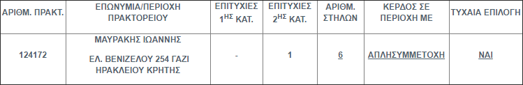 Επίσης στην δεύτερη κατηγορία (5άρια) βρέθηκε 1 τυχερό δελτίο το οποίο κερδίζει το ποσό των € 94.547,80.