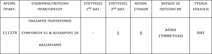 Επίσης στην δεύτερη κατηγορία (5άρια) βρέθηκε μία (1) επιτυχία, η οποία κερδίζει το ποσό των€225.855,99.