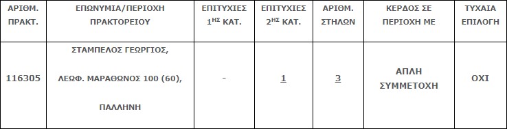 Επίσης στην δεύτερη κατηγορία (5άρια) βρέθηκε μία (1) επιτυχία που κερδίζει το ποσό των €59.612,21.