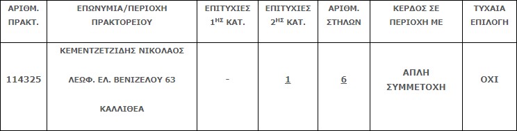 Επίσης στην δεύτερη κατηγορία (5άρια) βρέθηκε μία (1) επιτυχία, η οποία κερδίζει το ποσό των €64.303,49.