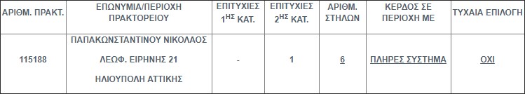 Επίσης στην δεύτερη κατηγορία (5άρια) βρέθηκε ένα (1) τυχερό δελτίο που κερδίζει το ποσό των €80.855,12.