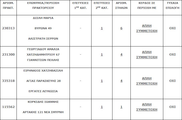 Επίσης στην δεύτερη κατηγορία (5άρια) βρέθηκαν εννέα (9) επιτυχίες. Η κάθε επιτυχία κερδίζει το ποσό των € 13.736,62.