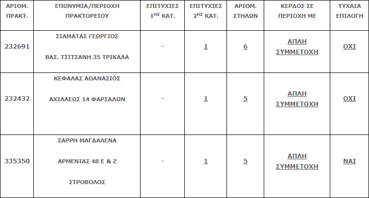 Επίσης στην δεύτερη κατηγορία (5άρια) βρέθηκαν έξι (6) τυχερά δελτία, τα οποία κερδίζουν το ποσό των €11.611,91 έκαστο.