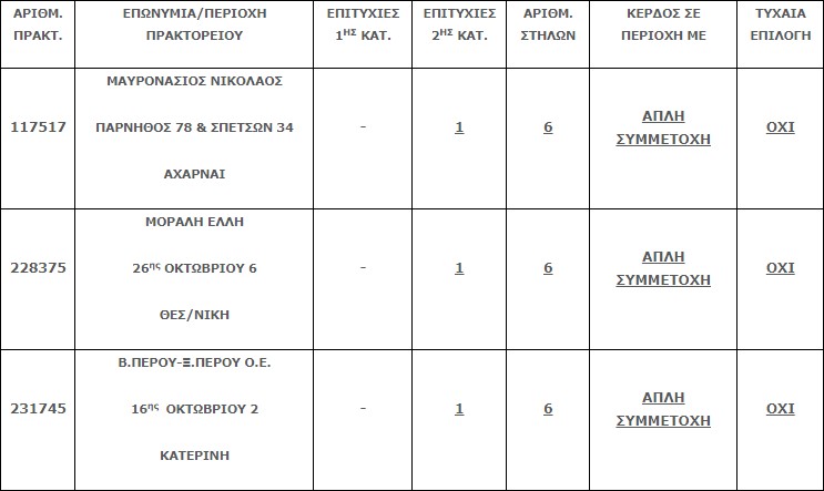 Επίσης στην δεύτερη κατηγορία (5άρια) βρέθηκαν τρία (3) τυχερά δελτία, τα οποία κερδίζουν το ποσό των €26.394,12 έκαστο.