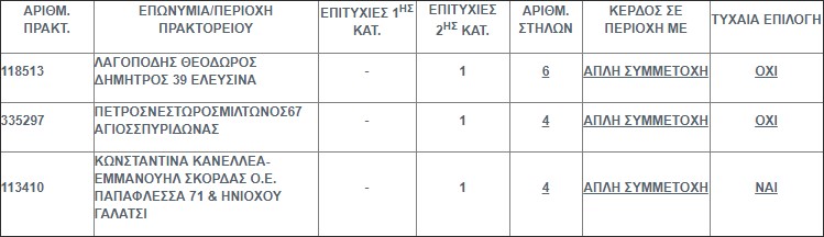 Επίσης στην δεύτερη κατηγορία (5άρια) βρέθηκαν τρία (3) τυχερά δελτία, που το καθένα κερδίζει το ποσό των €42.187,66.