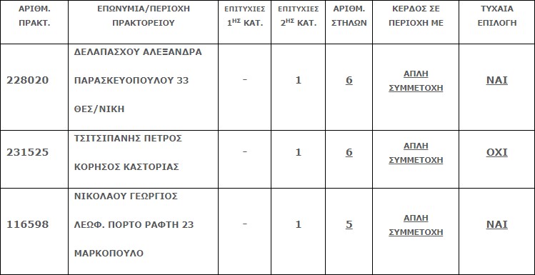 Επίσης στην δεύτερη κατηγορία (5άρια) βρέθηκαν τρεις (3) επιτυχίες, που κερδίζουν το ποσό των €35.489,57 το καθένα.