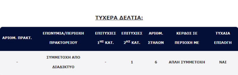 Επίσης, στη δεύτερη κατηγορία (5άρια) βρέθηκε ένα (1) τυχερό δελτίο, τα οποία κερδίζουν το ποσό των €100.000,00 για κάθε επιτυχία.
