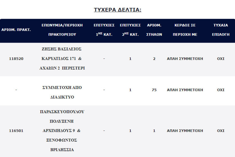 Επίσης, στη δεύτερη κατηγορία (5άρια) βρέθηκαν τρία (3) τυχερά δελτία, τα οποία κερδίζουν το ποσό των €100.000,00 για κάθε επιτυχία.