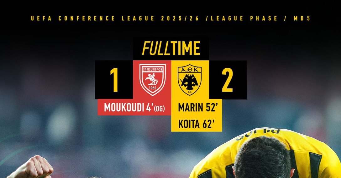 Για τη 5η Αγωνιστική της League Phase του UECL η Α.Ε.Κ. παρά το λανθασμένο γκολ του Μουκουντί κατάφερε να κάνει μια επική ανατροπή επί της Σαμσουνσπόρ!