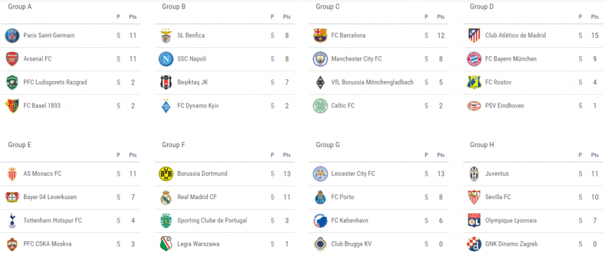 UEFA Champions League: Τα αποτελέσματα και η βαθμολογία της 5ης αγωνιστικής